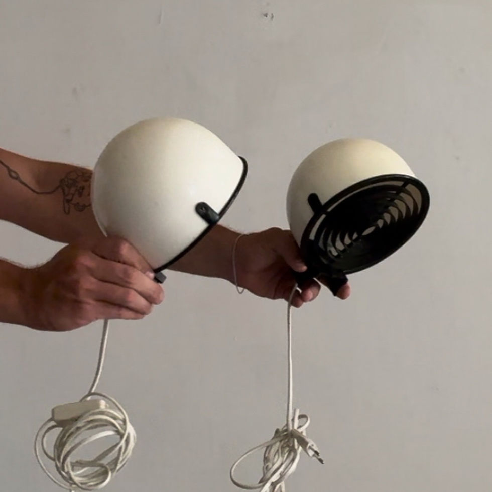 The pair of vintage IKEA wall lamps from the 1980s feature dome-shaped shades made of white plexiglass. The brackets that support the shades are also made of black plastic, maintaining a cohesive and minimalist aesthetic. These lamps exemplify a functional and streamlined design typical of IKEA's products from that era. The plastic construction contributes to their lightweight nature, making them easy to install and reposition as needed. The lamps are equipped with cords for convenient wall mounting and power connection.